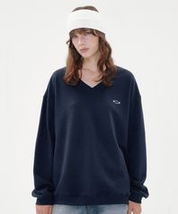 NOI1718 브이넥 시그니처 로고 맨투맨 (네이비)