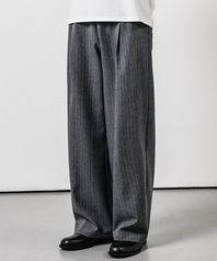 스트라이프 와이드 밴딩 슬랙스 그레이
