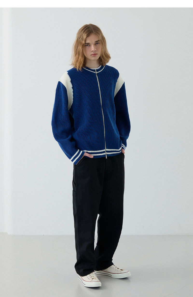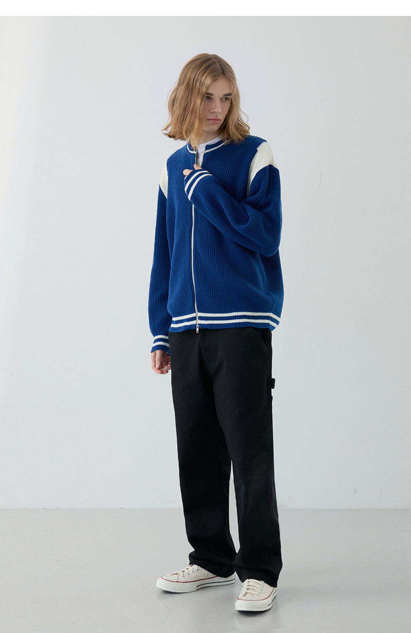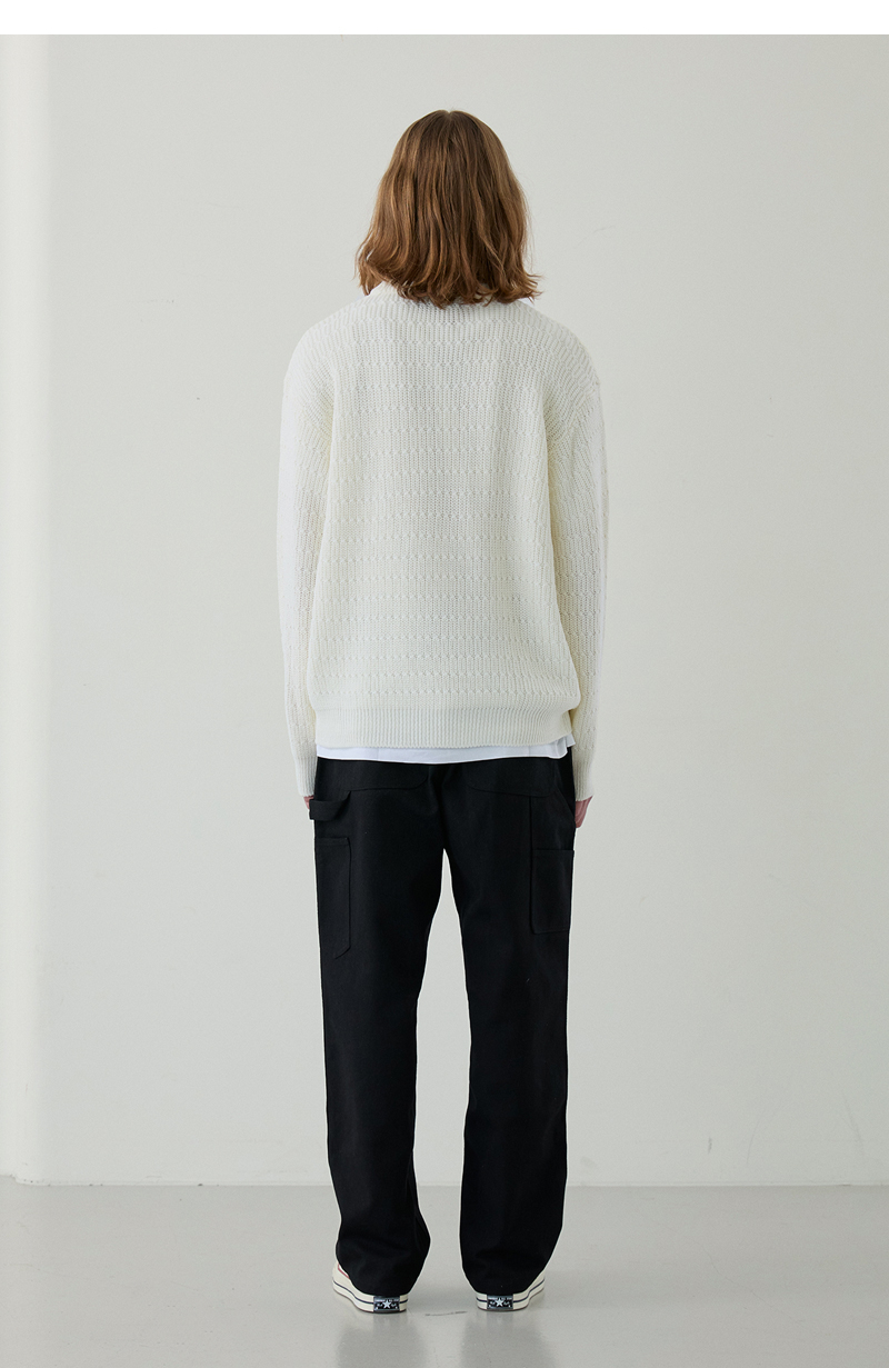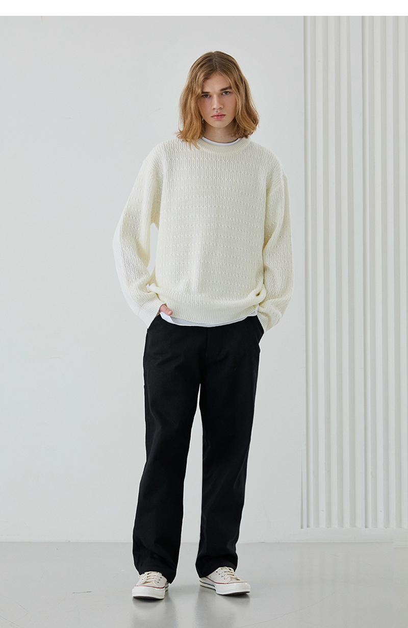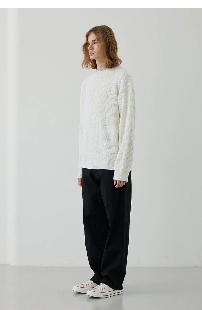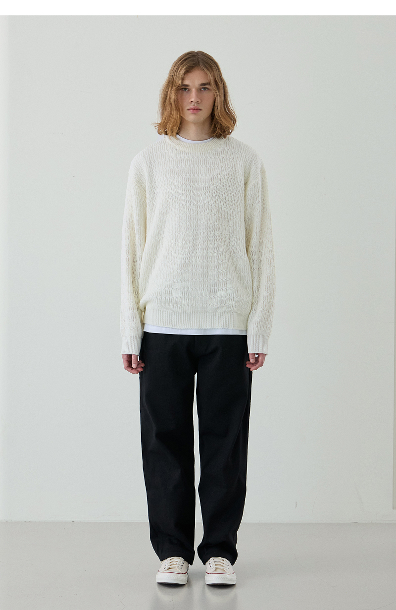 이지온 세미 오버핏 스트라이프 라운드넥 니트 [아이보리]