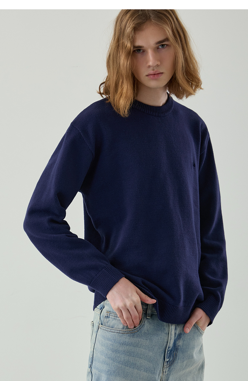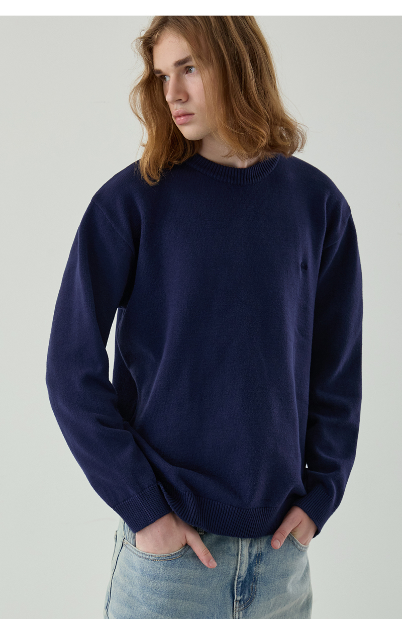 메이플 베이직 라운드 니트 [네이비]
