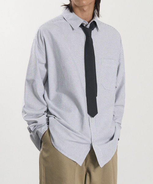 오버핏 옥스포드 스트라이프 셔츠 (BLUE)