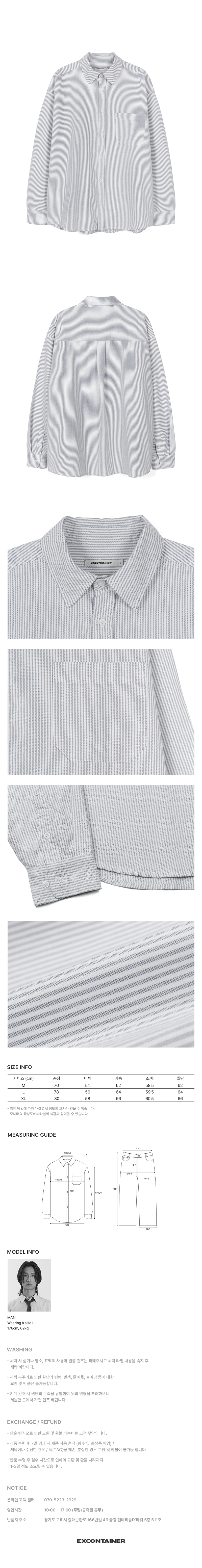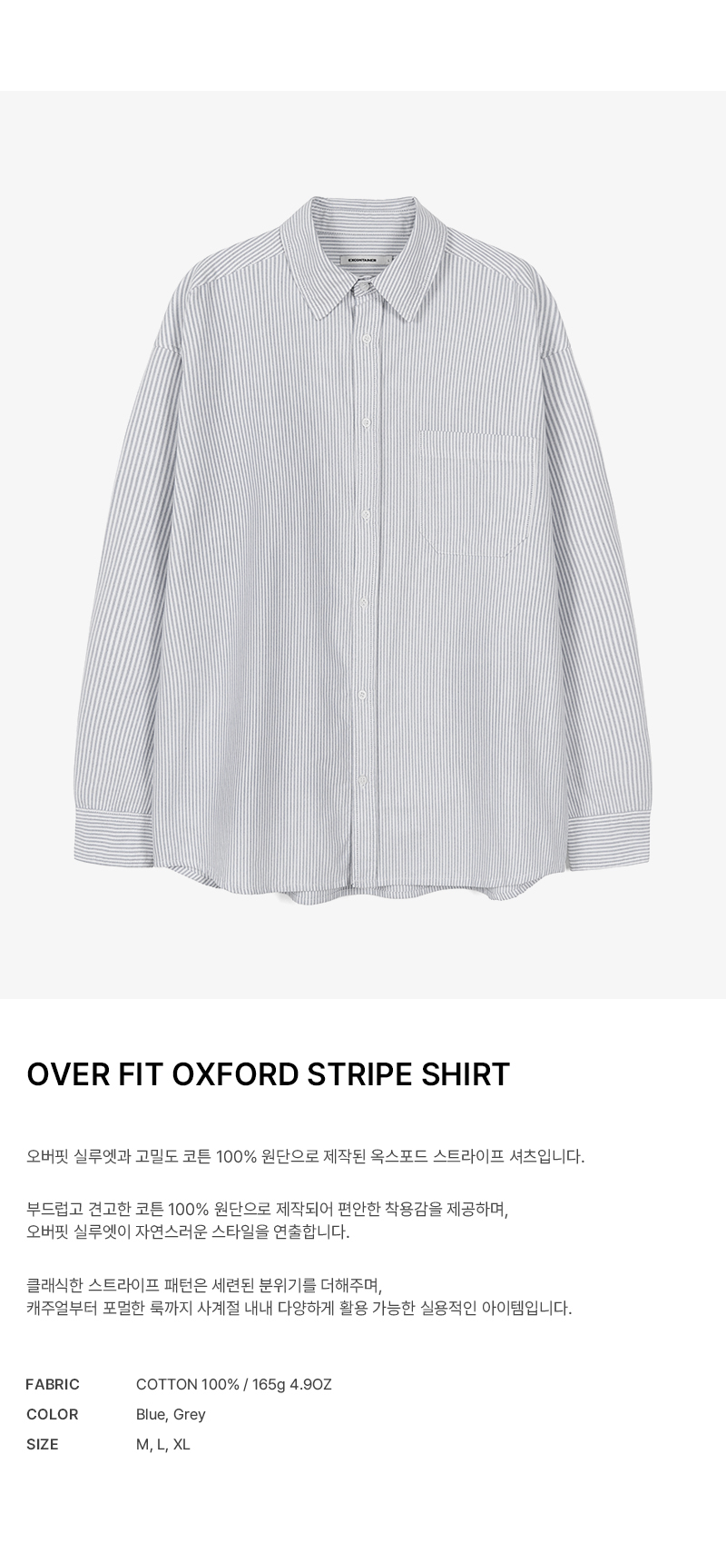 오버핏 옥스포드 스트라이프 셔츠 (GREY)