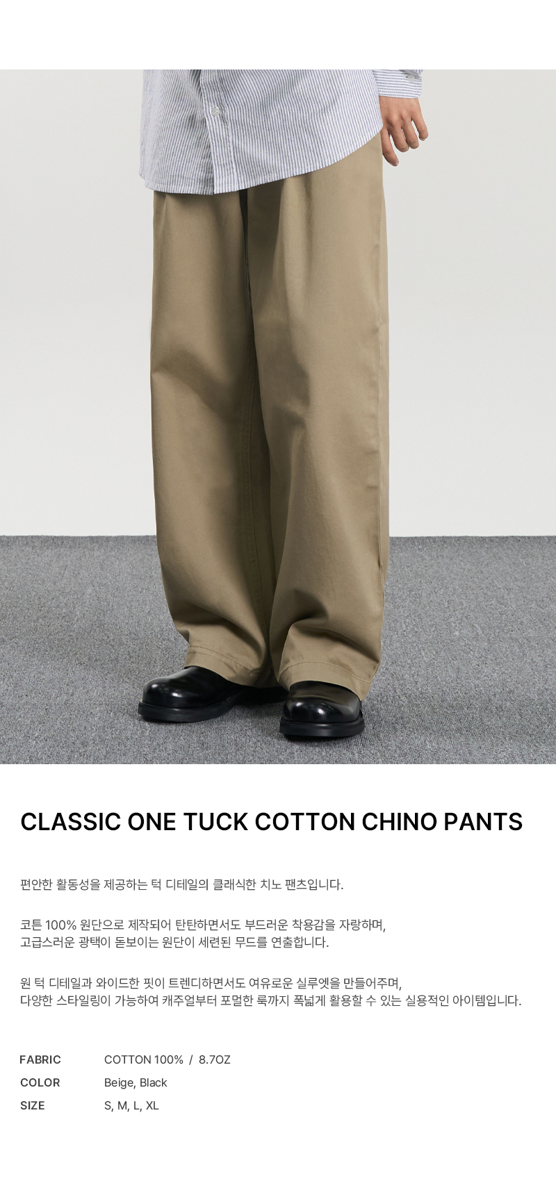클래식 원턱 코튼 치노 팬츠 (BEIGE)