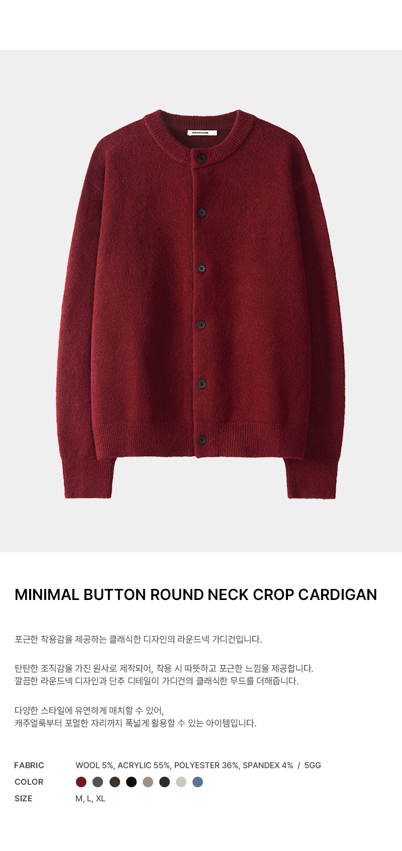 미니멀 버튼 라운드넥 크롭 가디건 (DARK RED)
