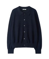 코튼 카라 니트 가디건 (NAVY)