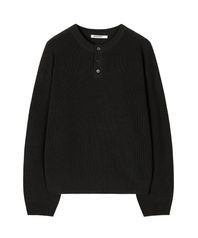 리브드 라운드 헨리넥 니트 (BLACK)