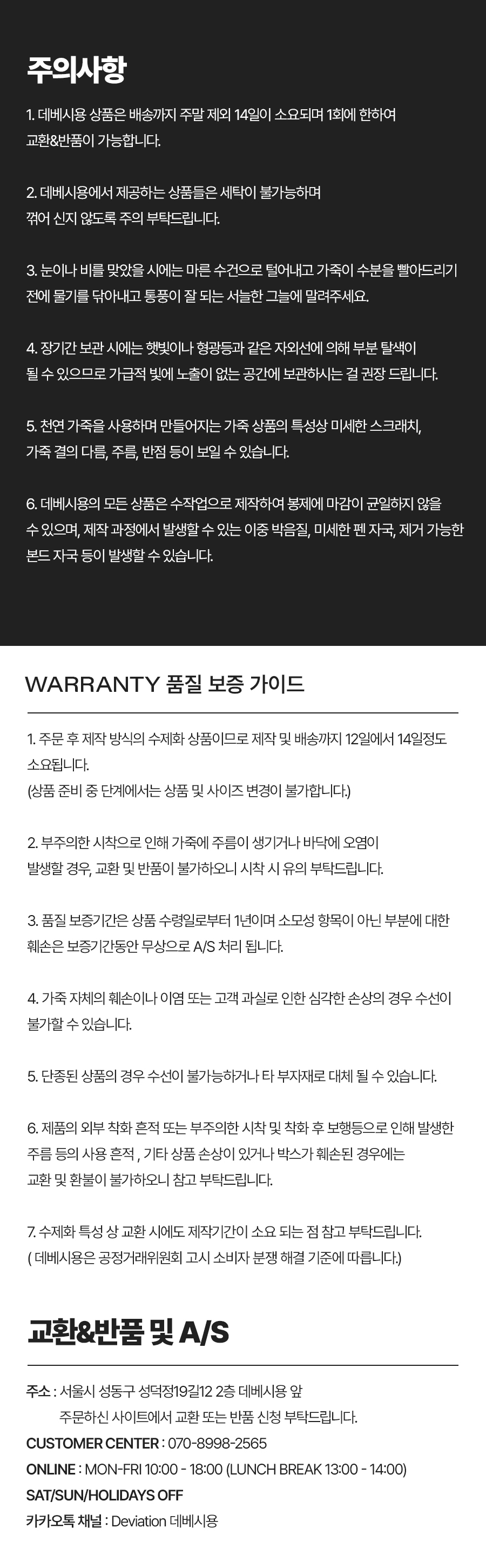 ※주문 결제가 완료된 이후, 주문내용의 변경 또는 취소가 어려우니 사이즈 상담이 필요하신 경우 주문 전에 문의 주시기 바랍니다.