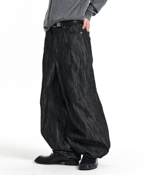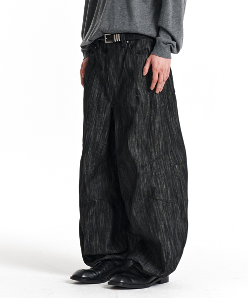 FLOWING WAVE BALLOON DENIM PANTS (RAW BLACK)