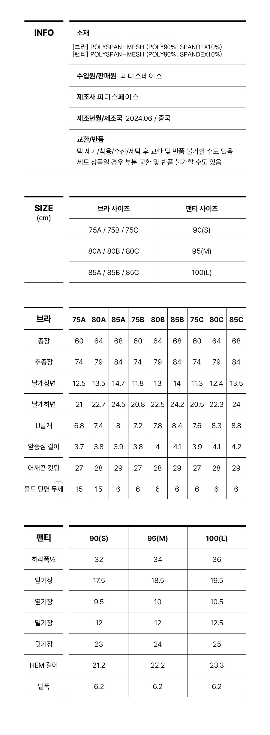 (노와이어) 볼륨 서포트 브라팬티 GG