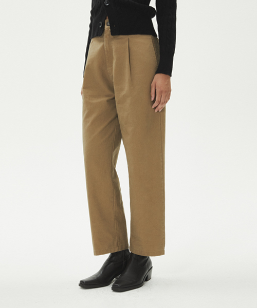 고밀도 100% 코튼 소재로 핀턱 디자인이 특징인 스트레이트 팬츠