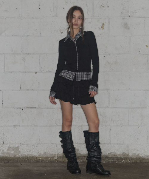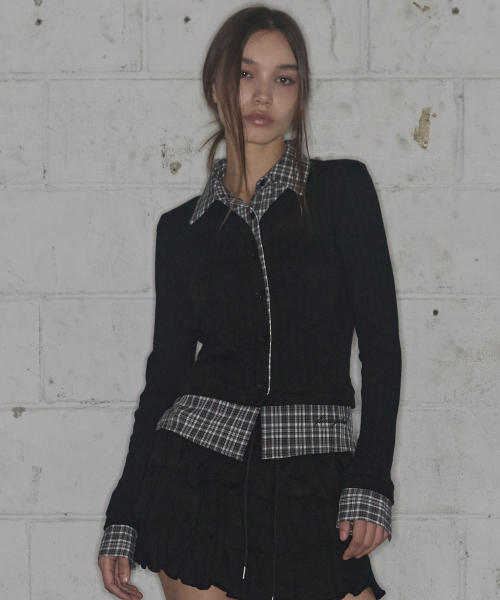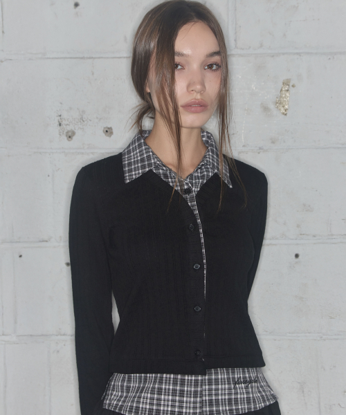 체크 셔츠 레이어드 가디건 (BLACK)_F24ZB066