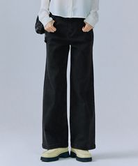 여성 블랙 워싱 히든밴딩 와이드 데님 팬츠-CERG2363B03