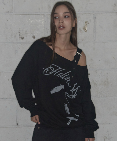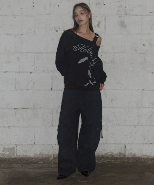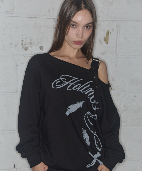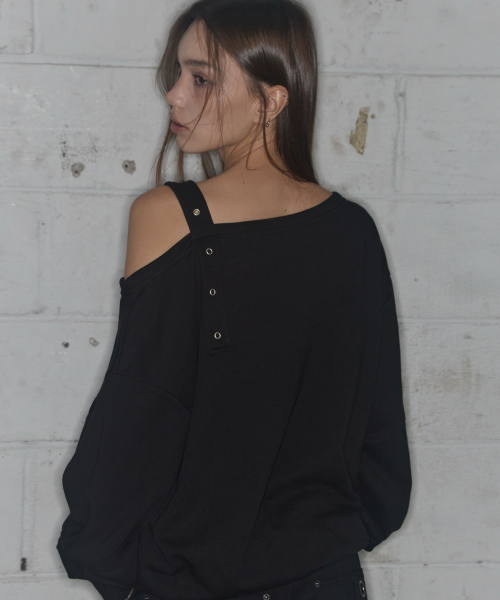 원숄더 버클 스웻셔츠 (BLACK)_F24ZB063