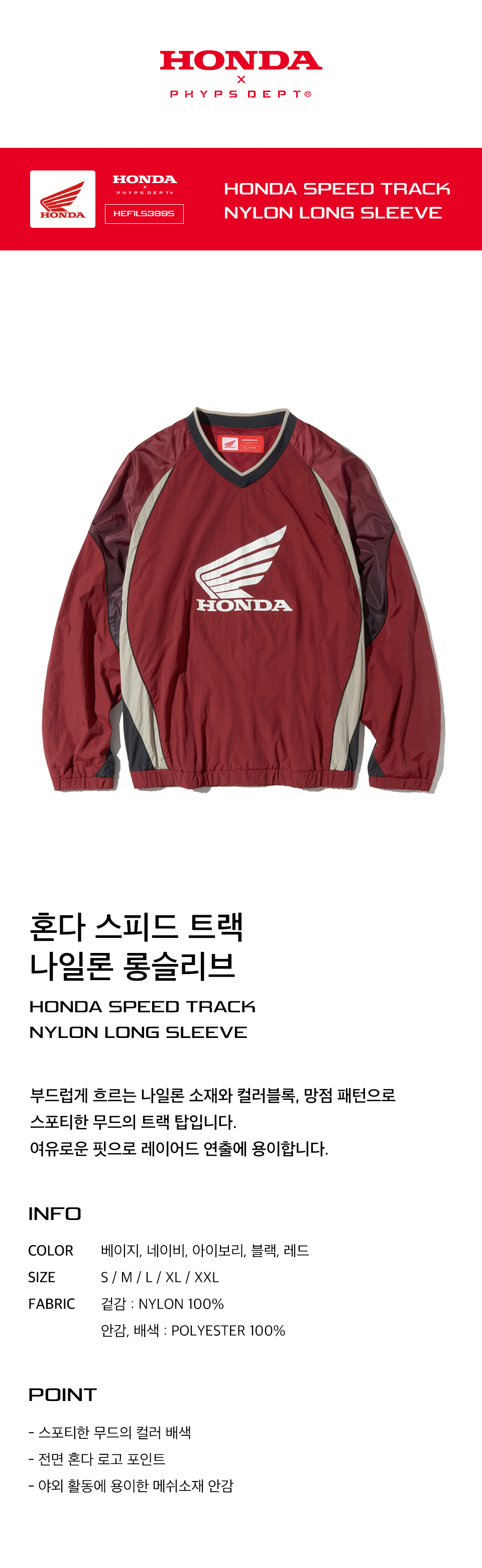 혼다 모터사이클 어패럴(HONDA MOTORCYCLE APPAREL)은 피지컬 디파트먼트(PHYPS)가 혼다 모터사이클(Honda Motorcycle)과 공식 라이선스 계약을 통해 정식으로 전개하는 모터사이클 어패럴 컬렉션 브랜드입니다.