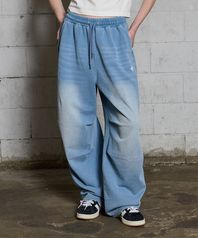 클로버 로고 아플리케 워싱 데님 스웨트팬츠 라이트블루