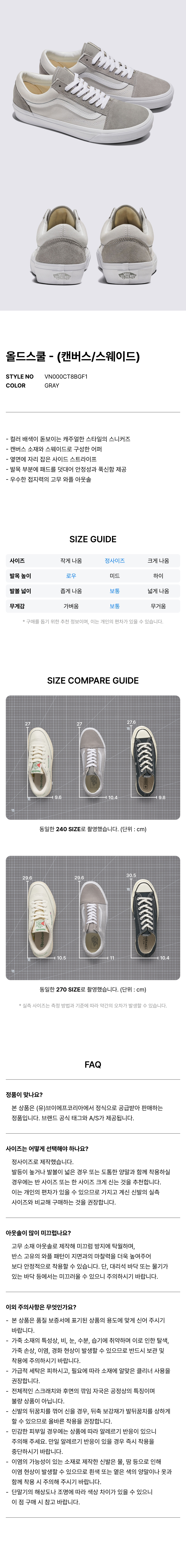 올드스쿨 - (캔버스/스웨이드) 블록 그레이 / VN000CT8BGF1