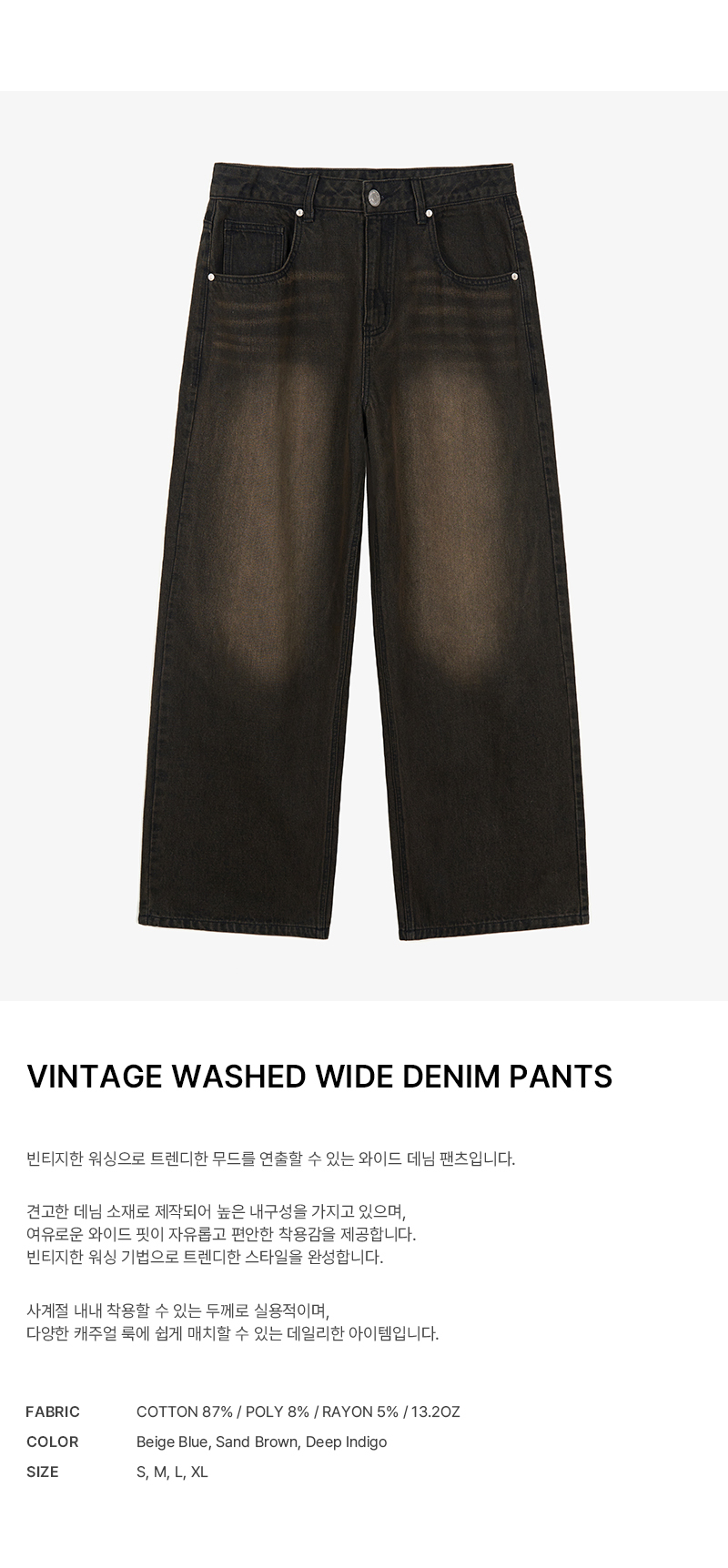 빈티지 워시드 와이드 데님 팬츠 (SAND BROWN)