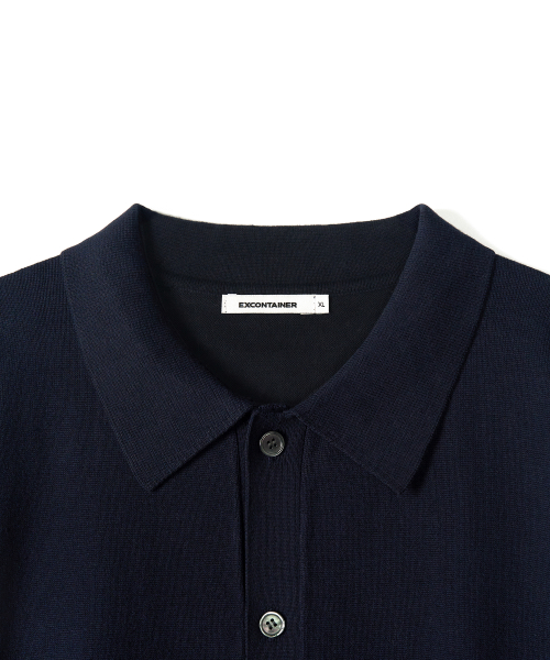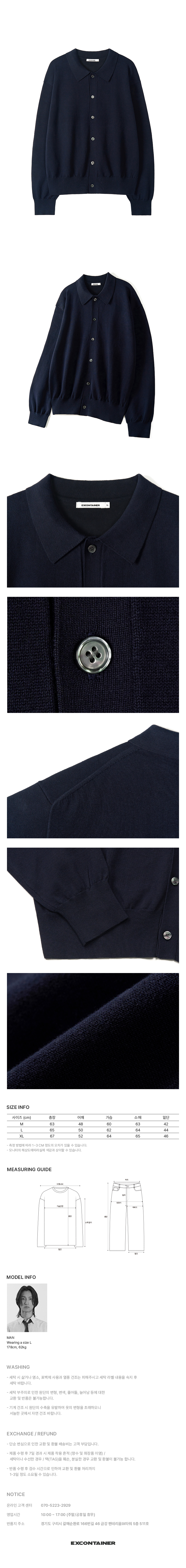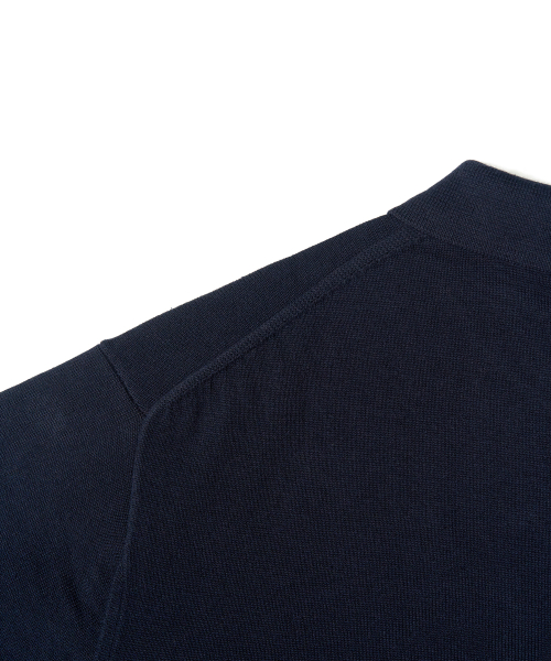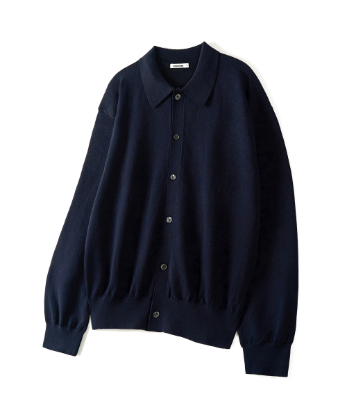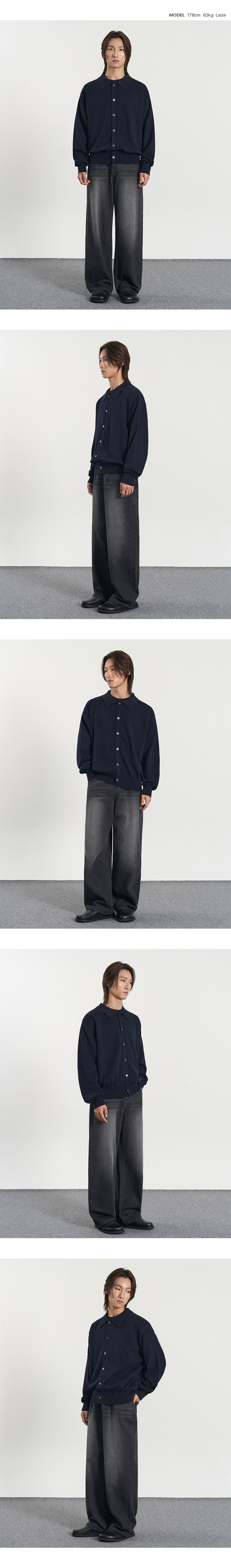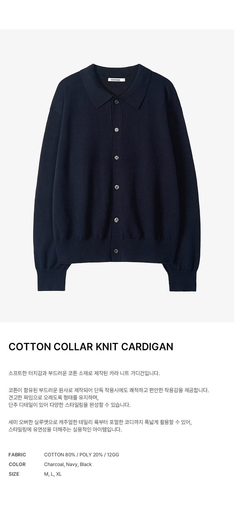코튼 카라 니트 가디건 (NAVY)