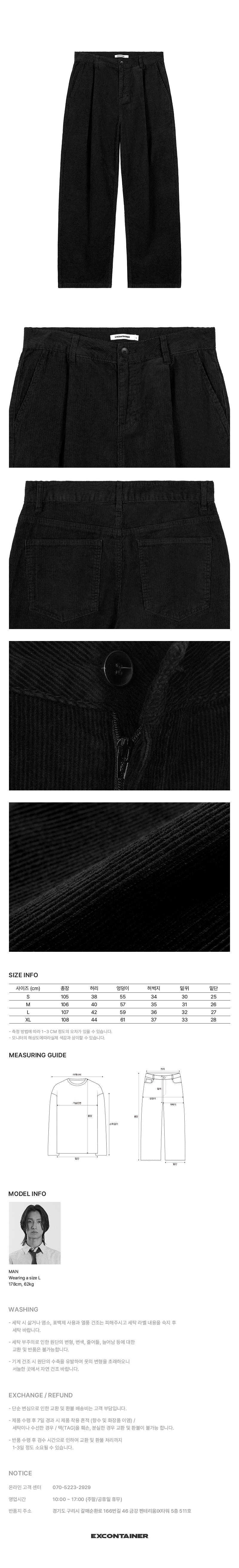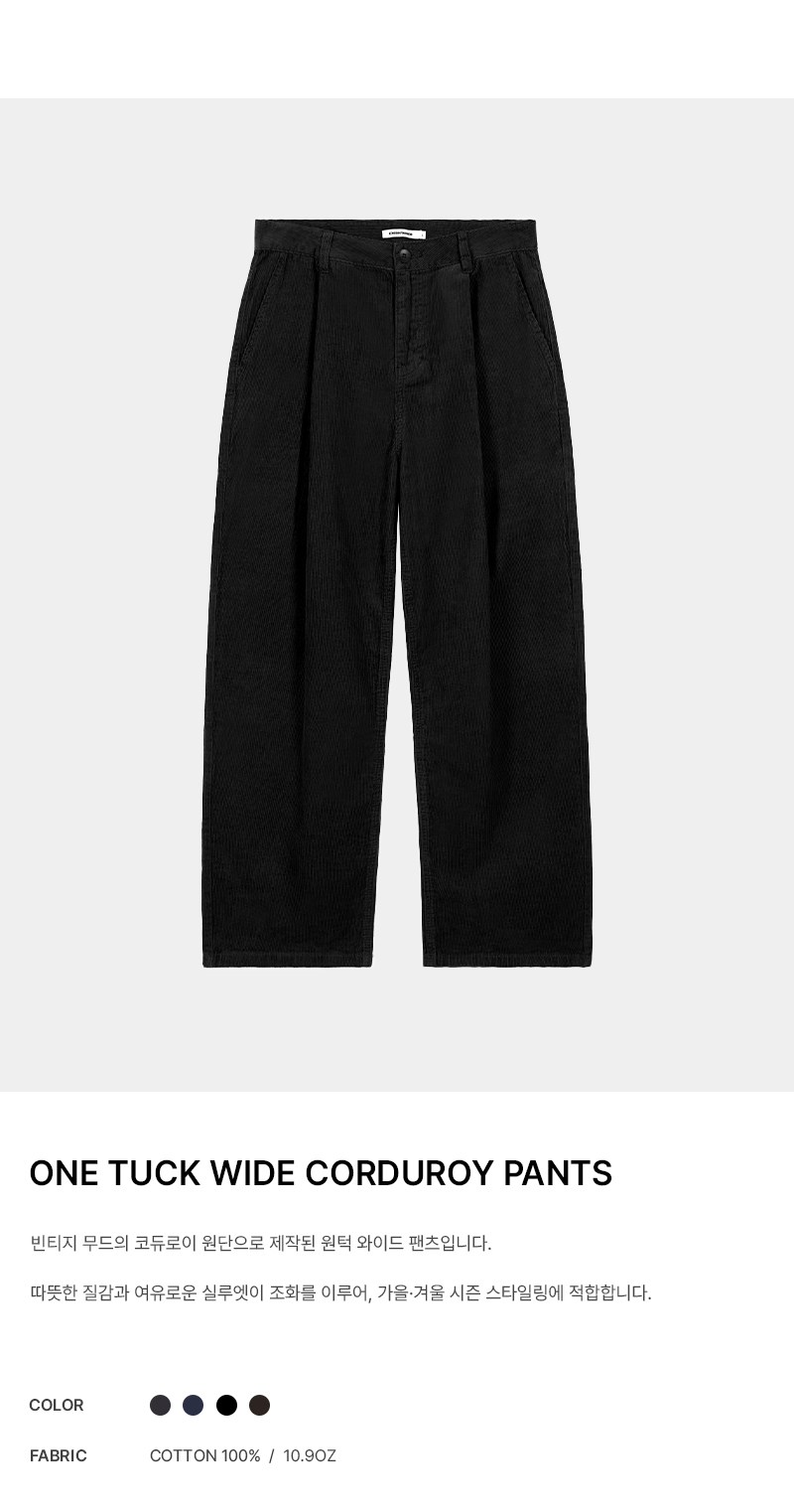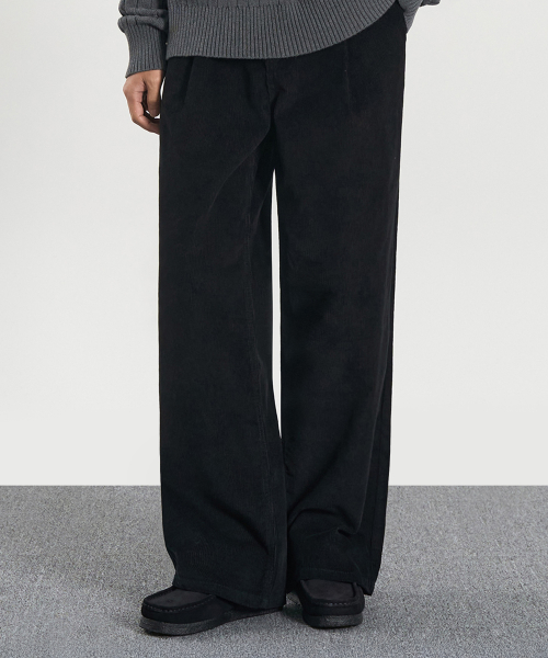 원턱 와이드 코듀로이 팬츠 (BLACK)