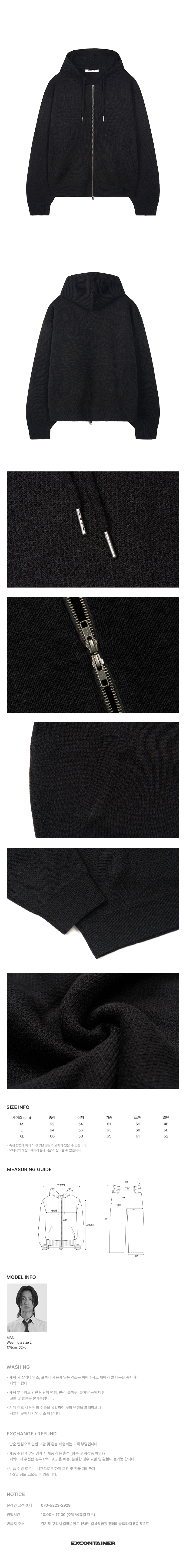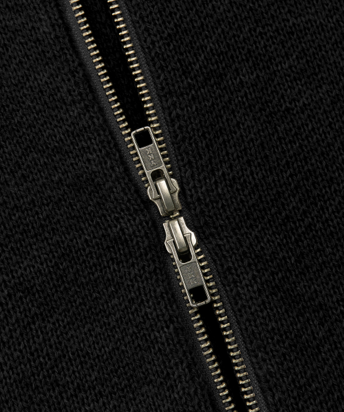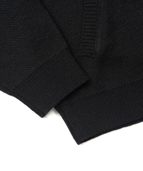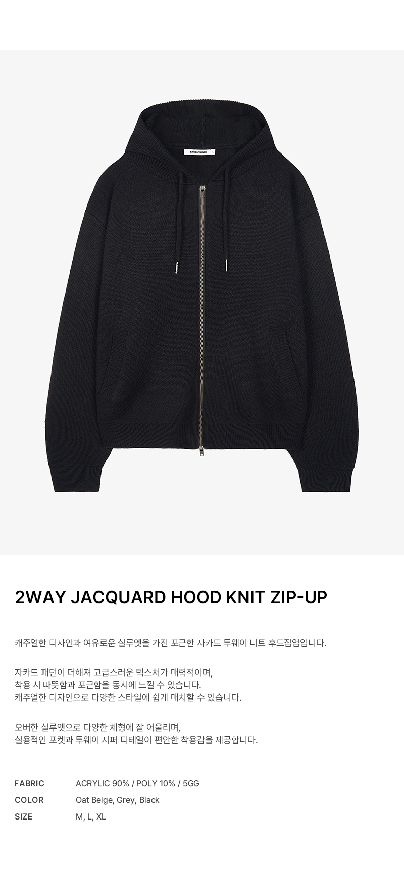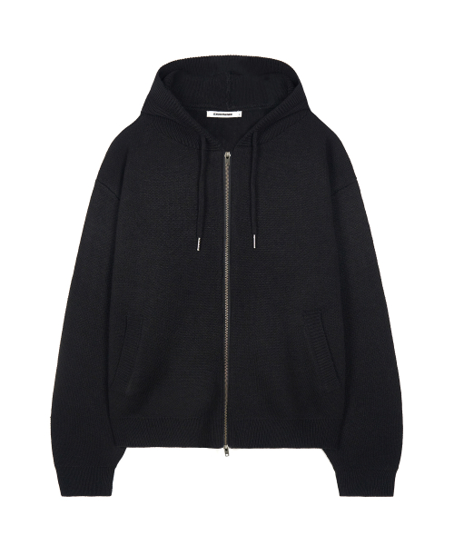 자카드 투웨이 후드 니트 집업 (BLACK)