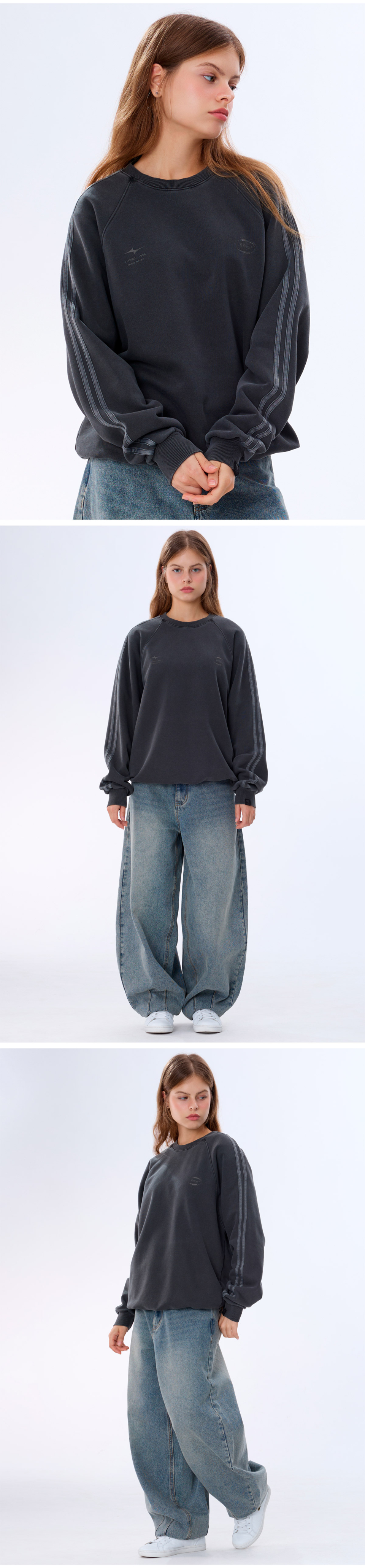 심볼 로고 래글런 트랙 맨투맨 GMT-155_피그먼트 블랙
