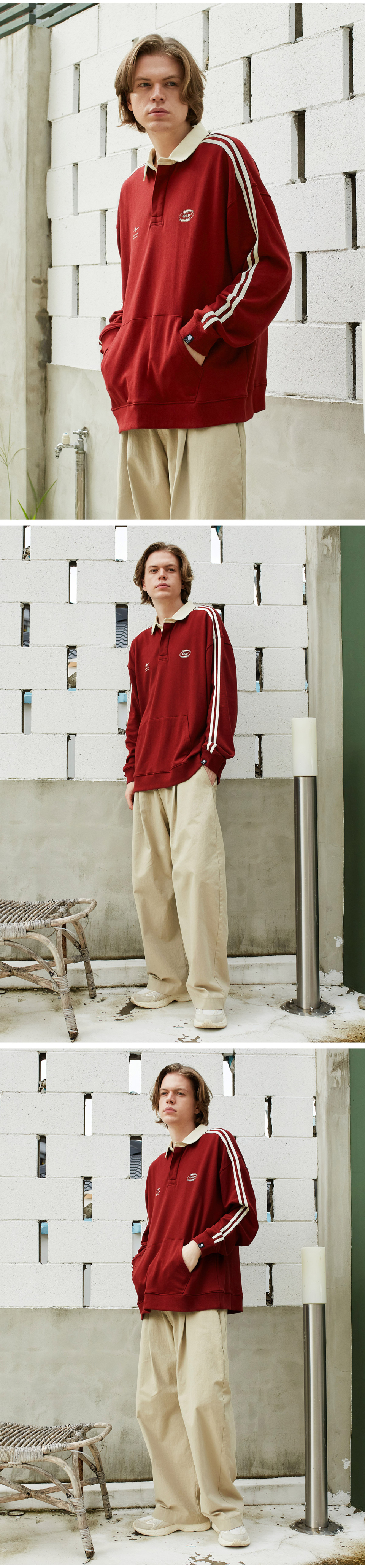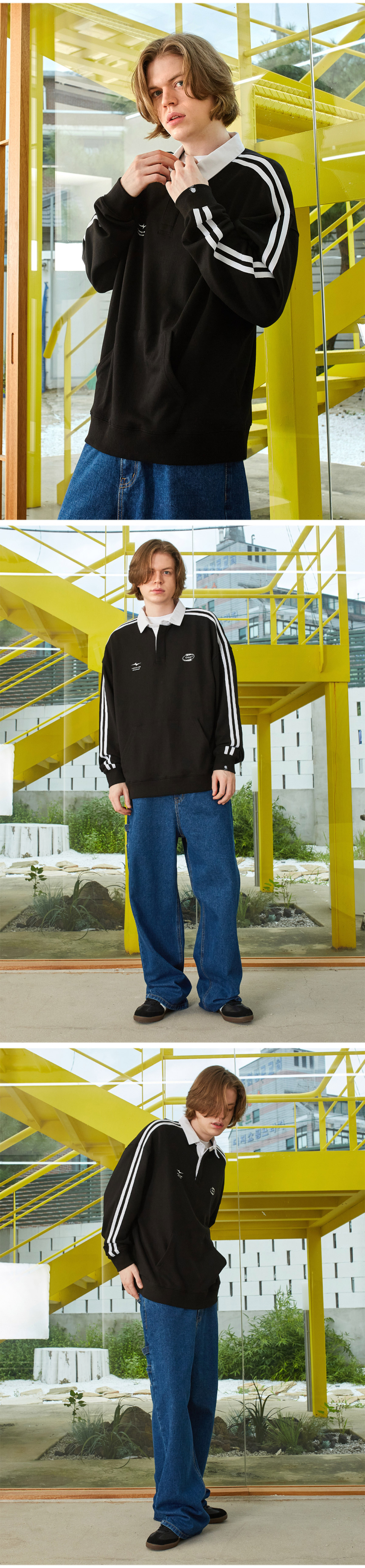 레더 패치 데님 카라 럭비 맨투맨_네이비