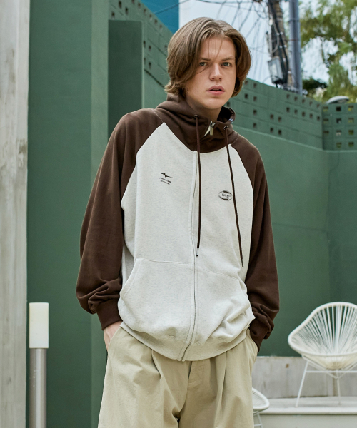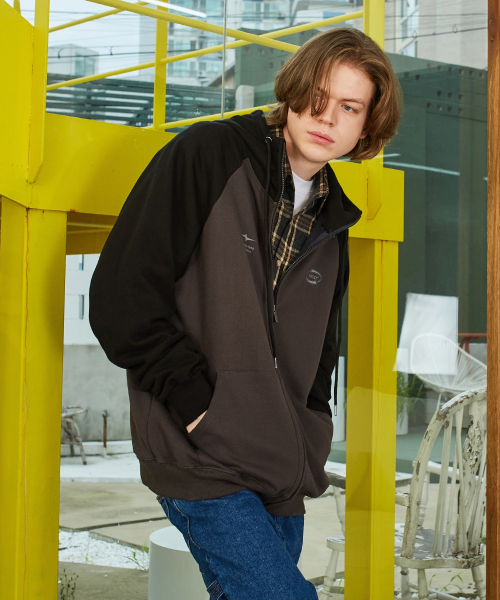 심볼로고 래글런 배색 후드집업 GHZ-274