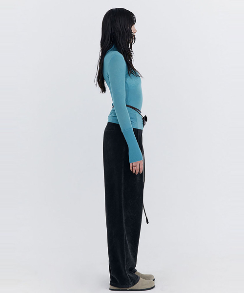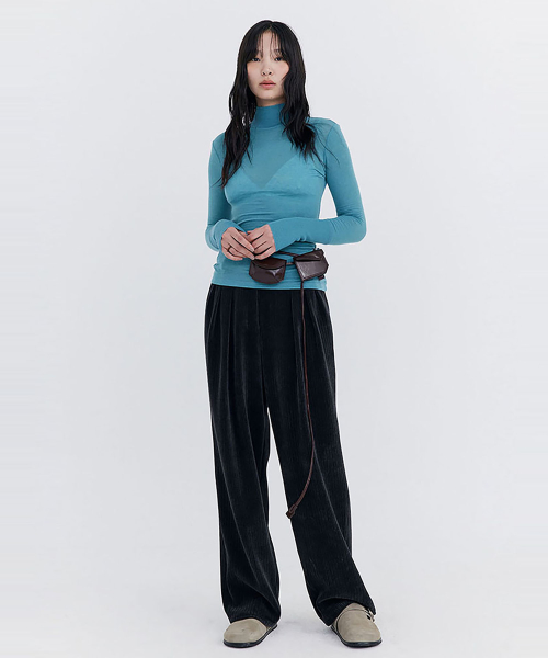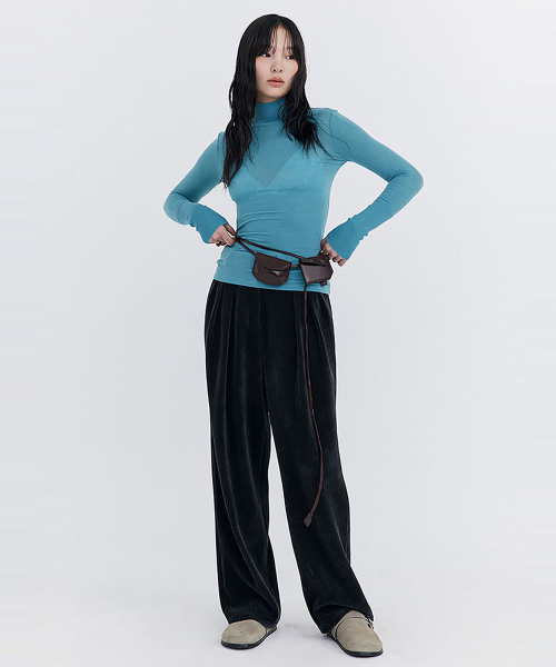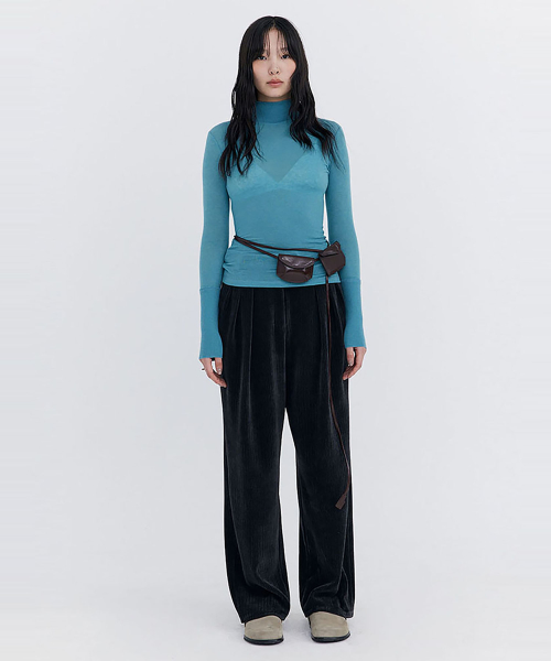 Knit Rib Half Turtleneck T-shirt / Blue