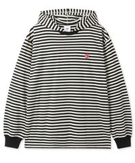 STRIPE HOODED L/S TEE - BLACK