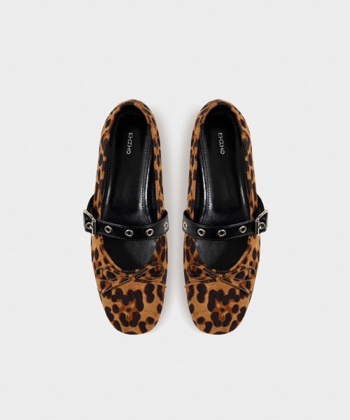 BUCKLE STRAP BALLERINA FLAT / LEOPARD