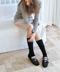 크리스탈 버클 스트랩 발레리나 플랫 블랙