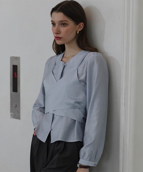 Day Layered Wrap Blouse [Pale Blue]
