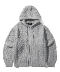 워셔블 아란 케이블 후드 집업 니트 (MELANGE GRAY)