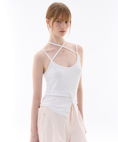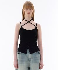 BEBE UNBALANCE SLEEVELESS TOP / BLACK