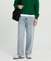 로우 세미 와이드 워싱 데님 팬츠 (Light Blue)
