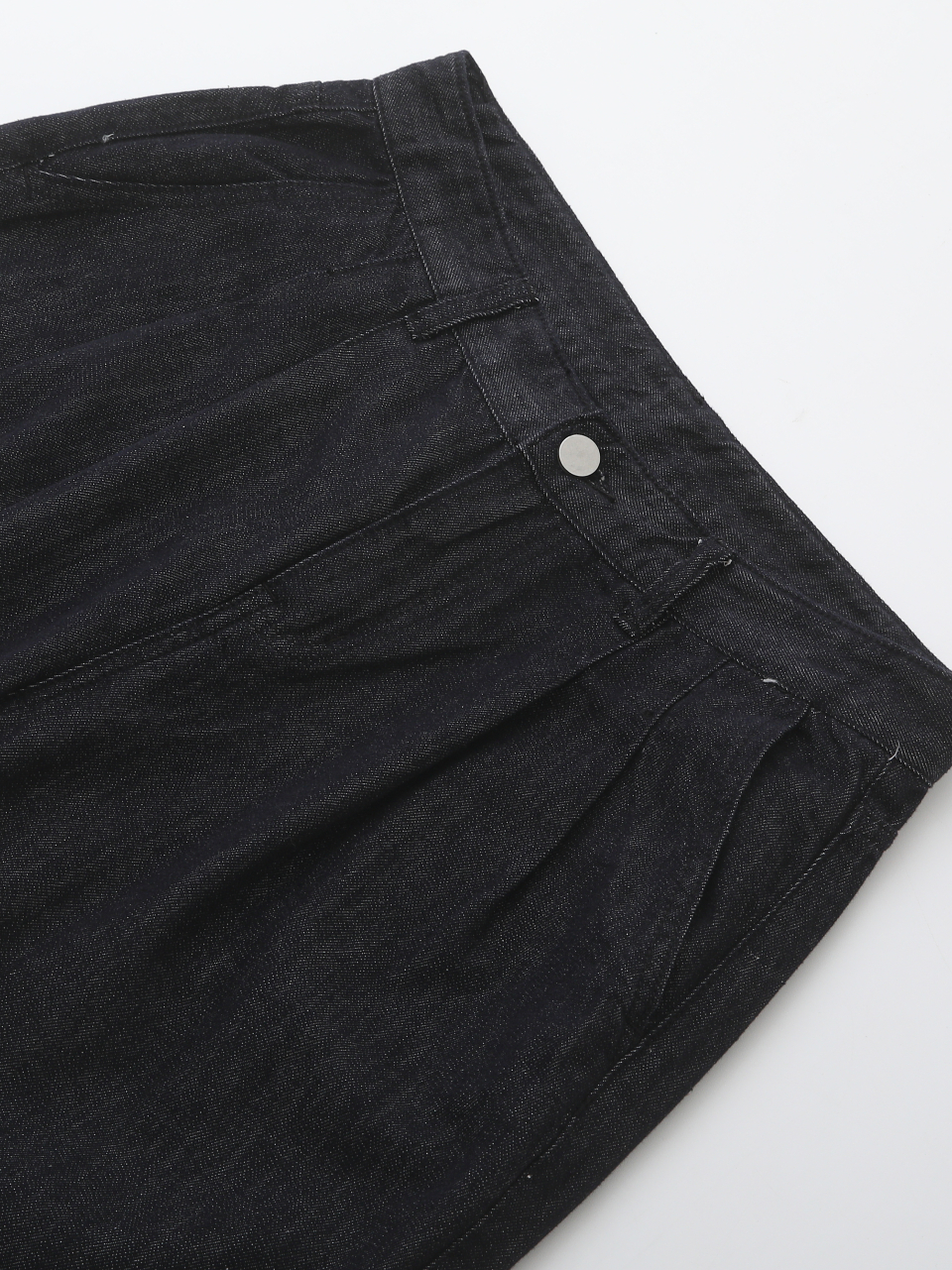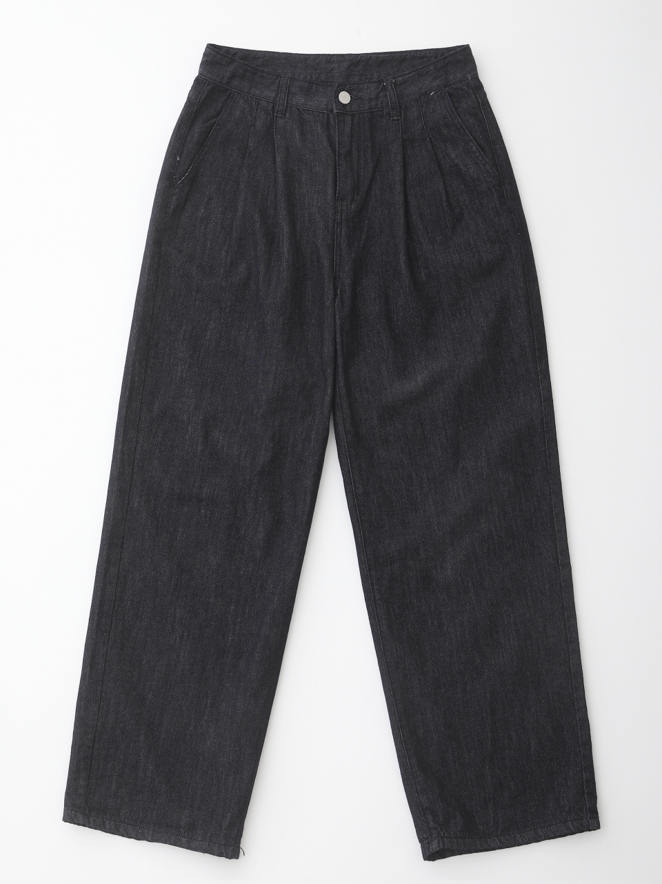 뒷밴딩 무지 워싱 와이드 데님 팬츠[인디고블루]