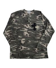 Double Cross Camouflage Henley Neck T-shirt ((khaki))