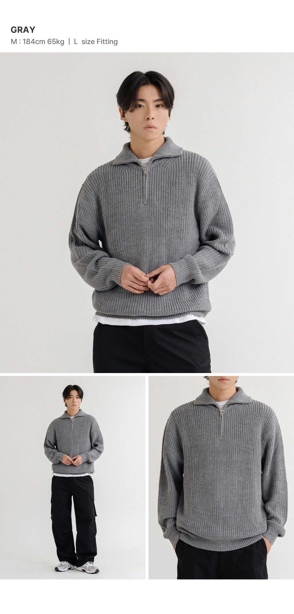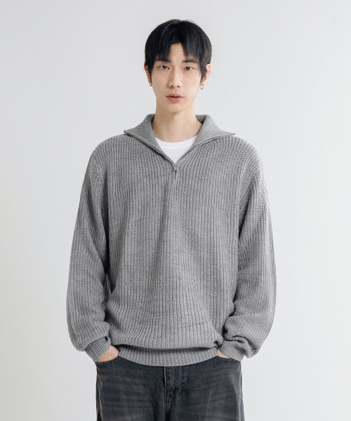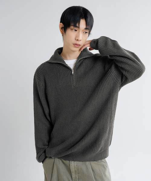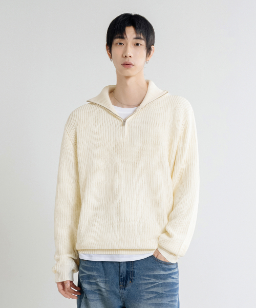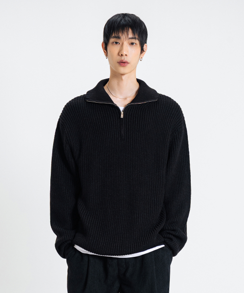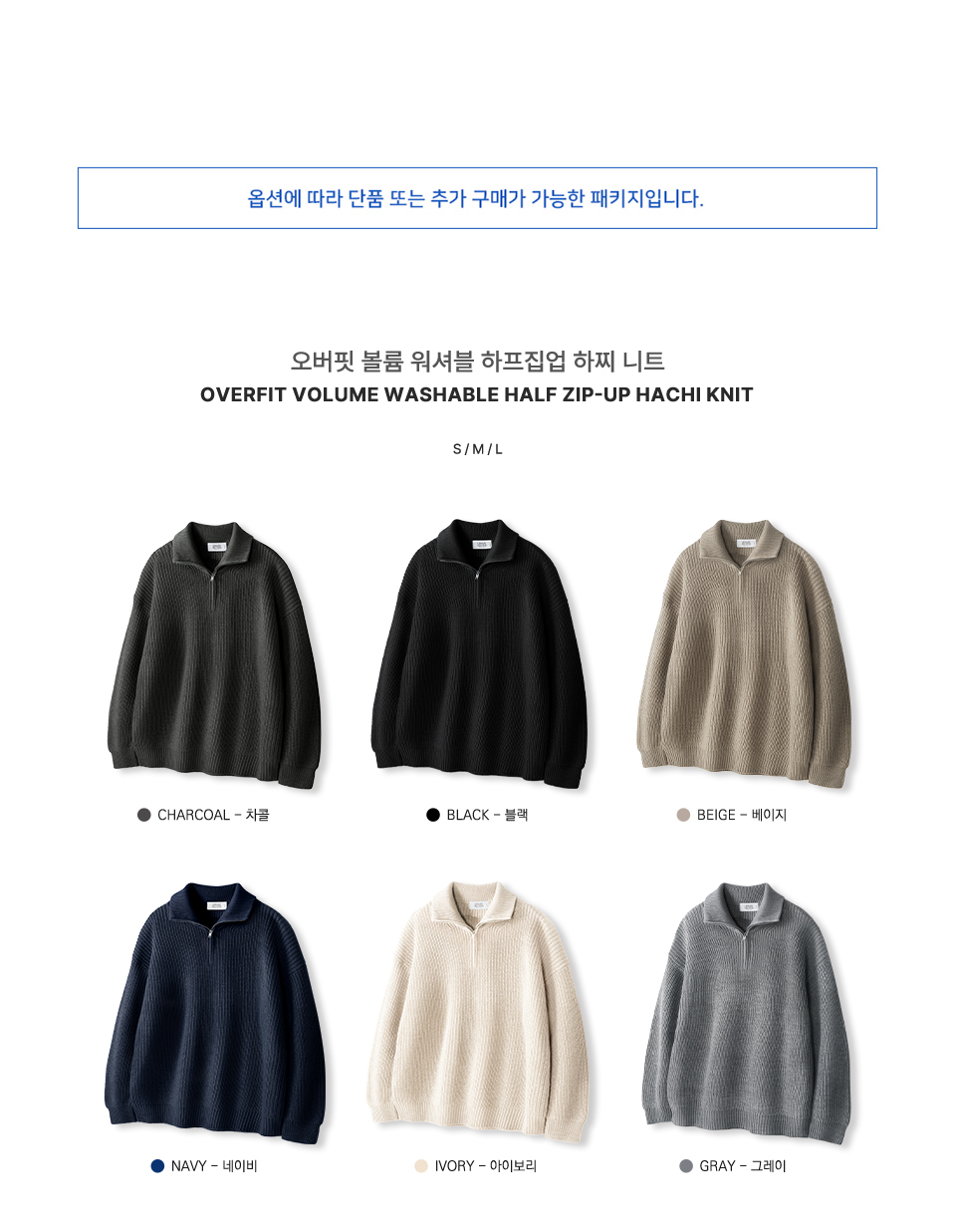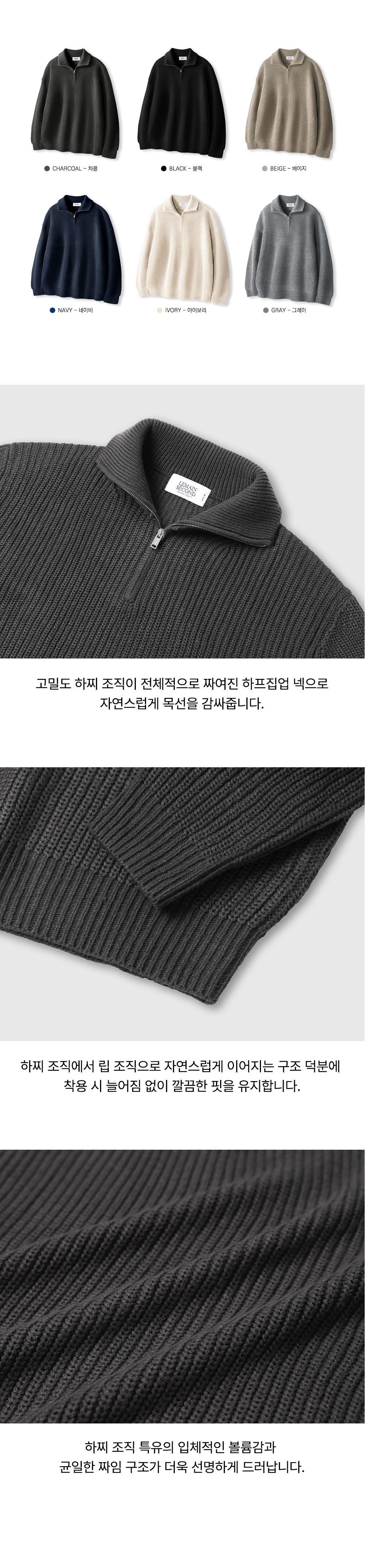 오버핏 볼륨 워셔블 하프집업 케이블 니트_6COLOR