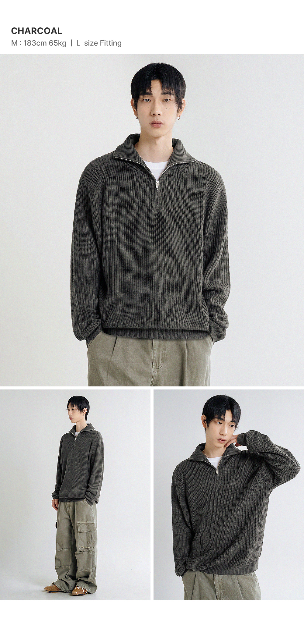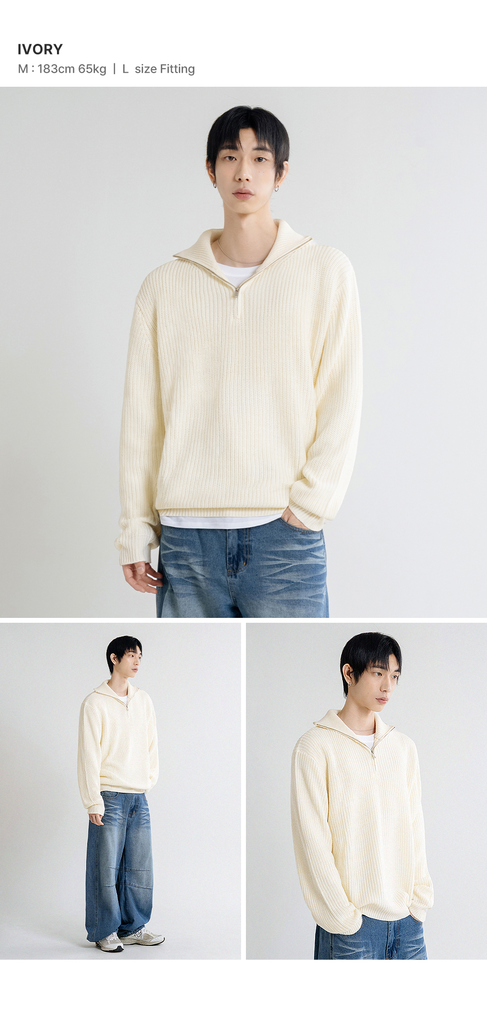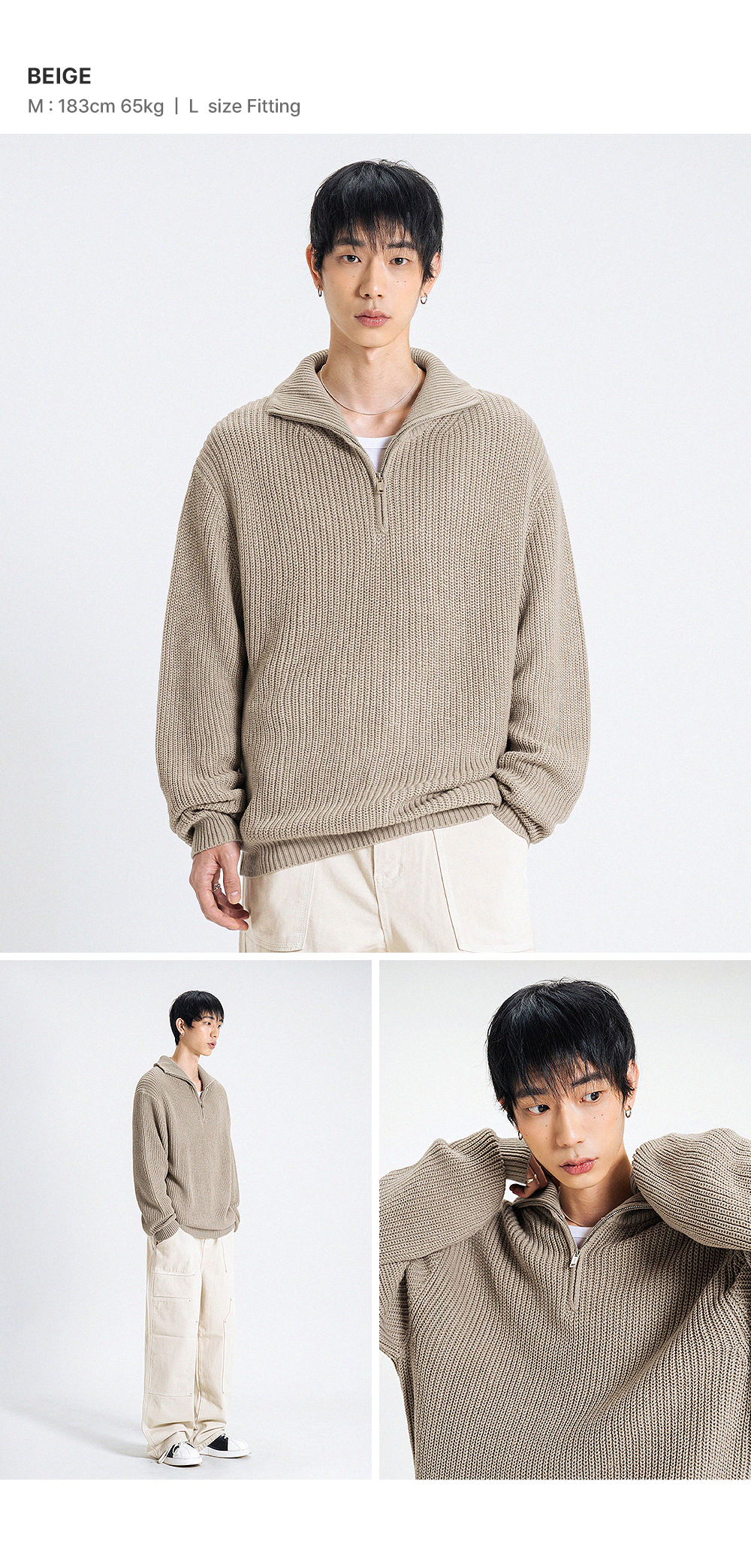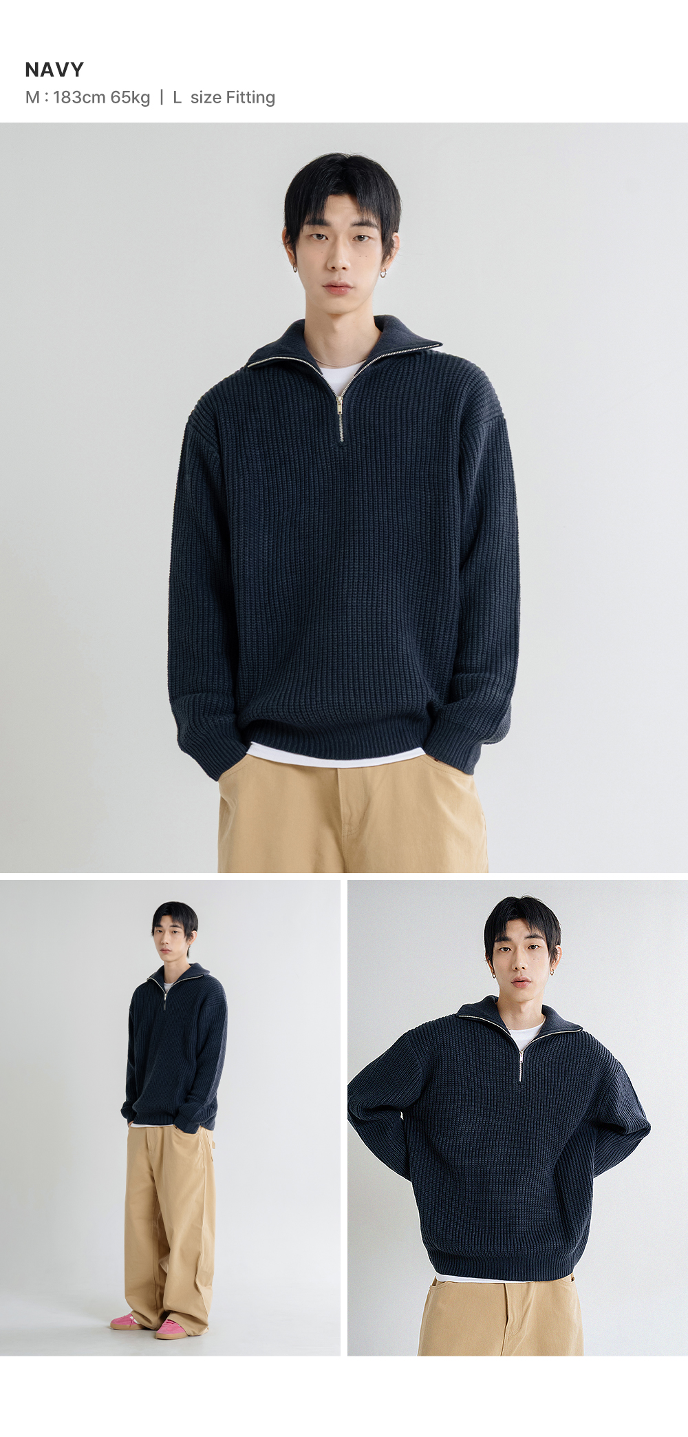 오버핏 볼륨 워셔블 하프집업 케이블 니트_6COLOR