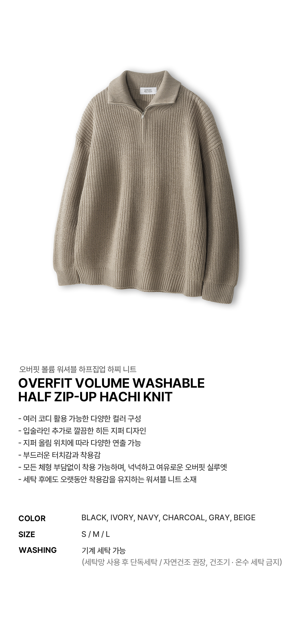 오버핏 볼륨 워셔블 하프집업 하찌 니트_6COLOR