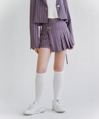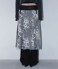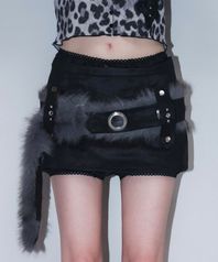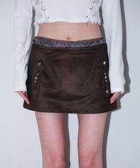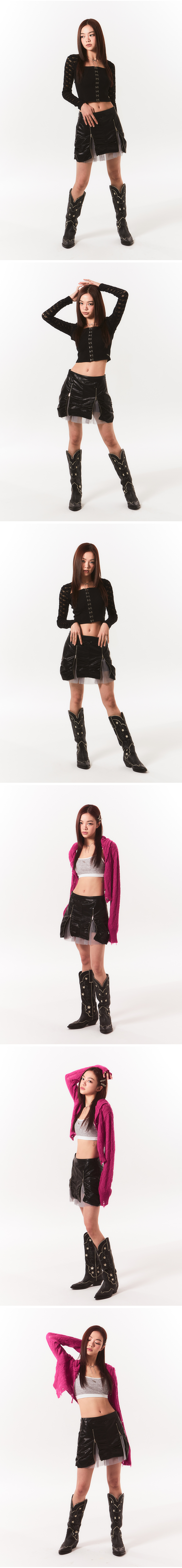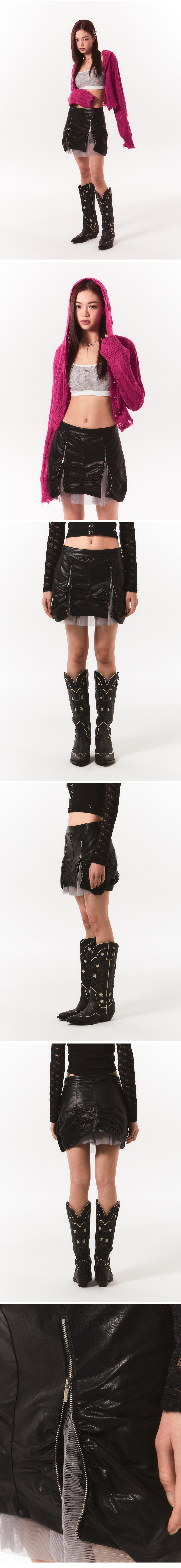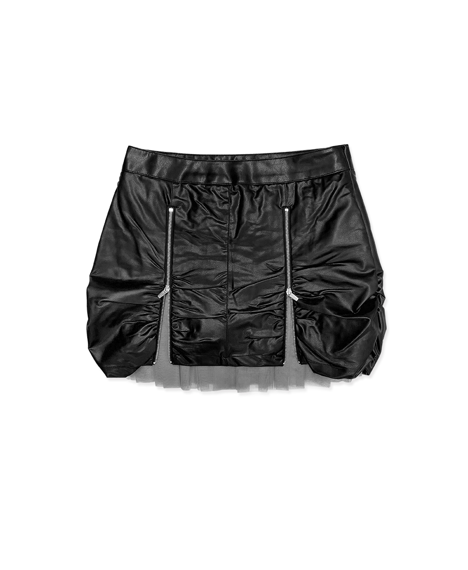 - 페이크 레더 소재와 망사 소재 레이어드의 셔링 스커트