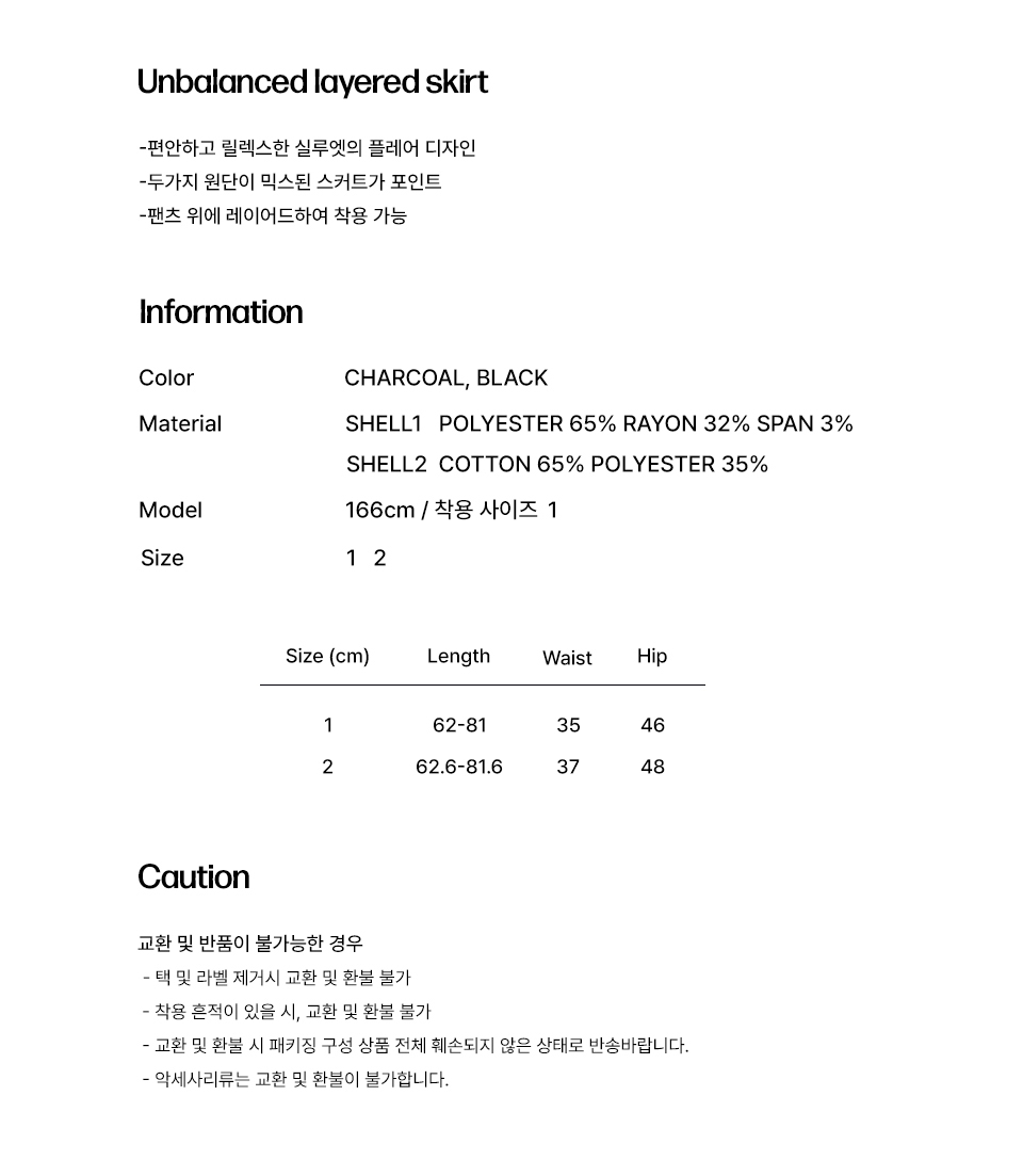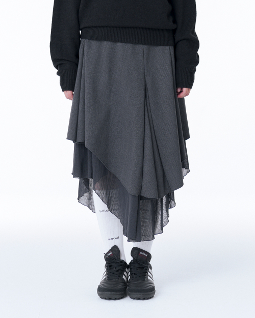 Unbalanced layered skirt CHARCOAL