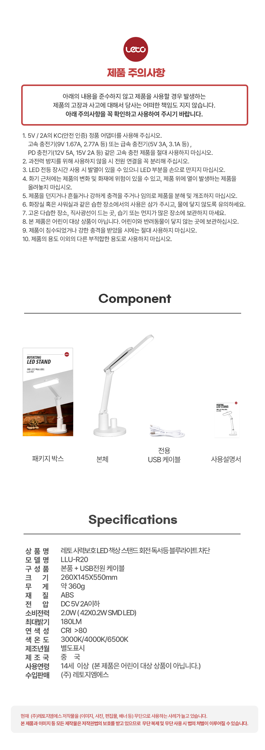 학습용 LED 책상 스탠드