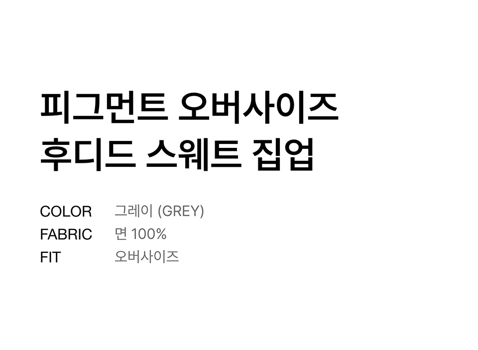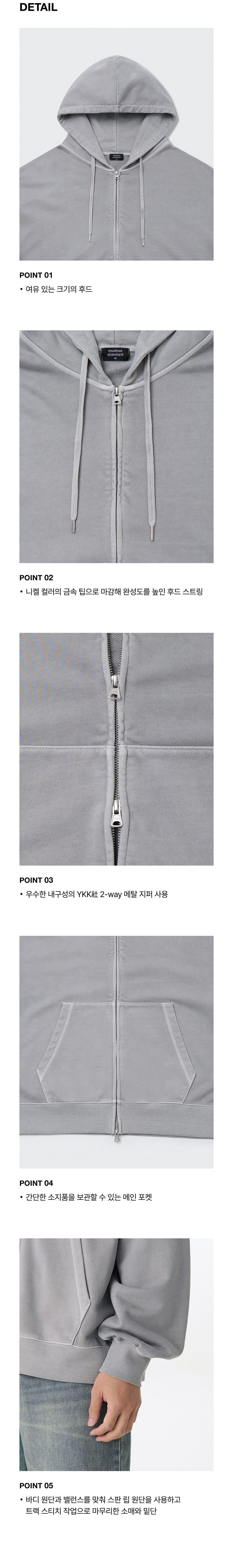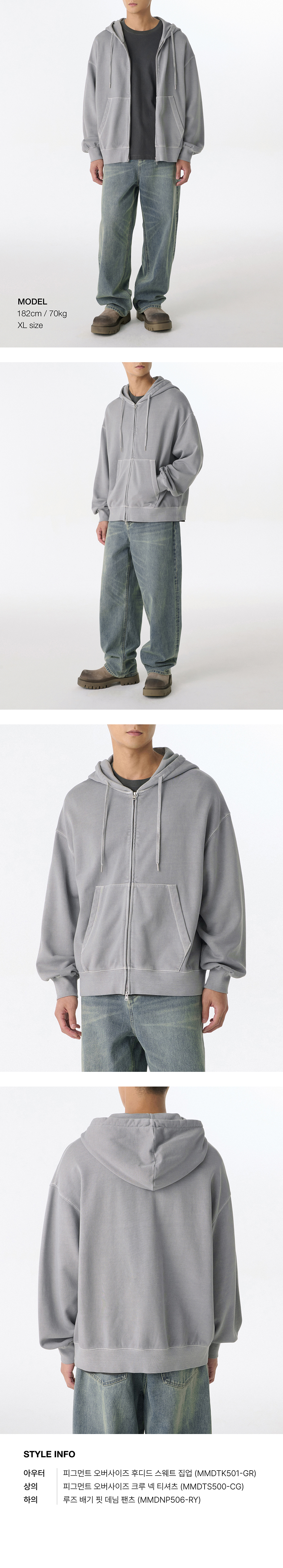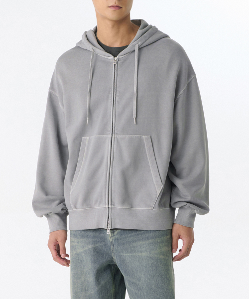 피그먼트 오버사이즈 후디드 스웨트 집업 [그레이]