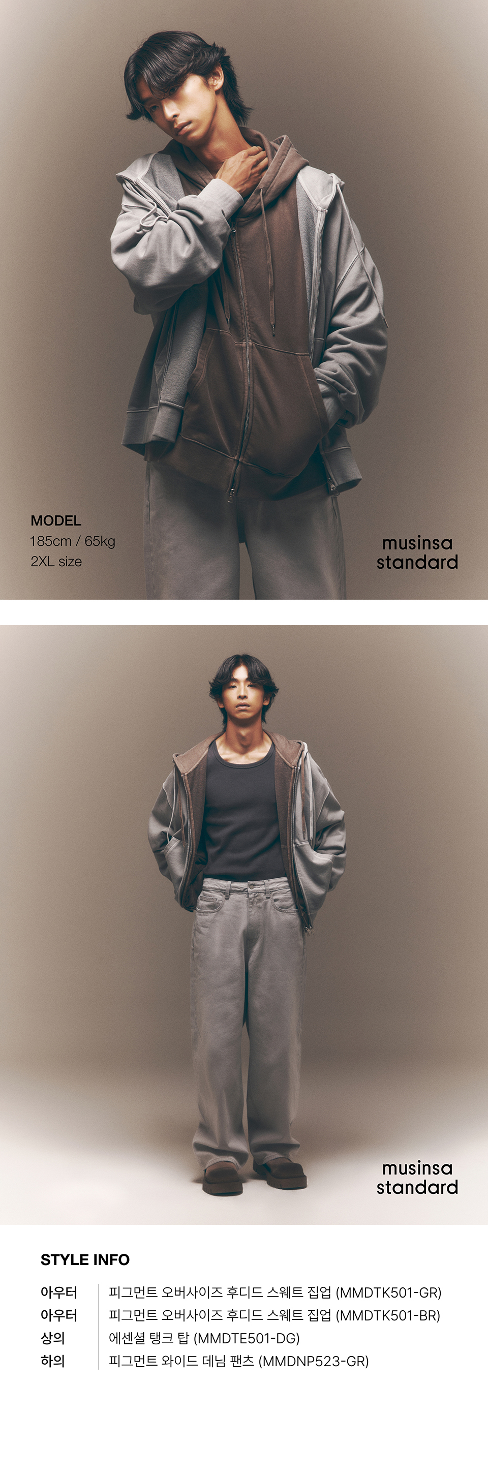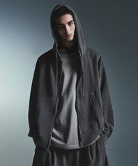 피그먼트 오버사이즈 후디드 스웨트 집업 [차콜 그레이]