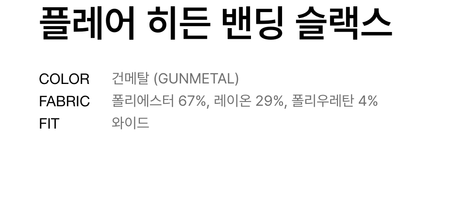 플레어 히든 밴딩 슬랙스 [건메탈]