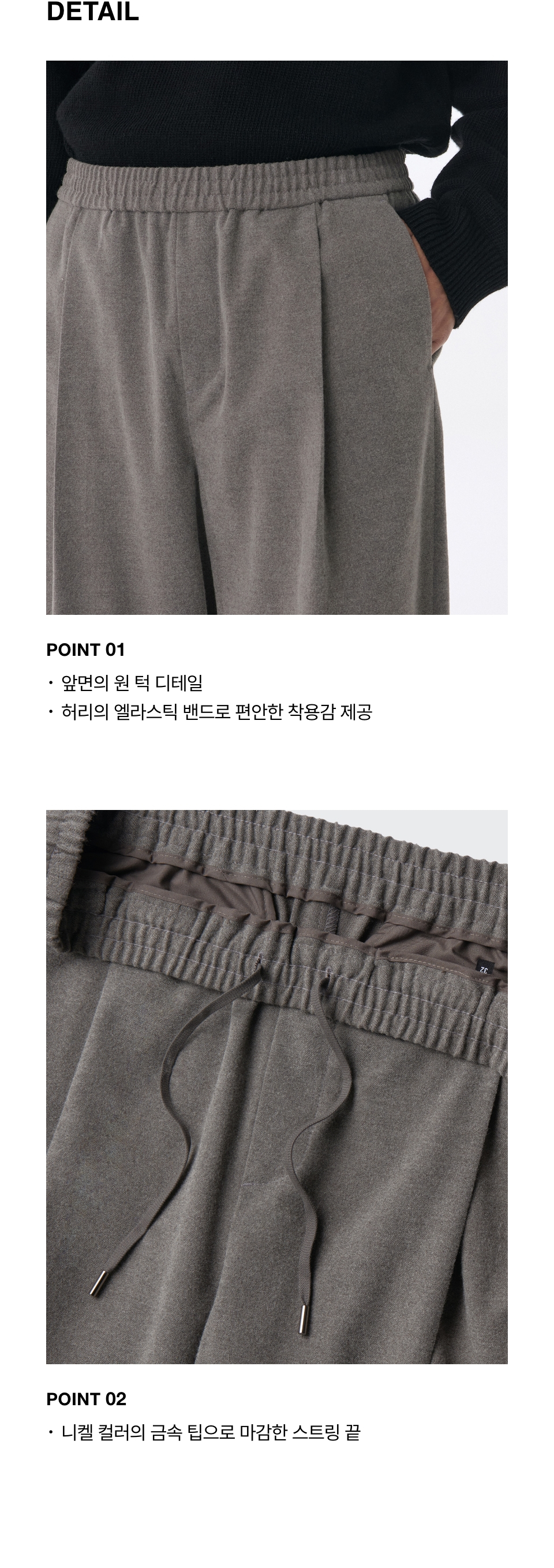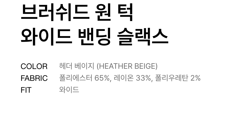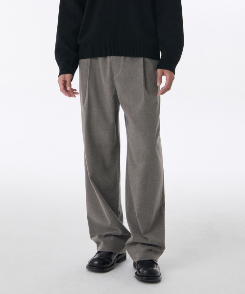 브러쉬드 원 턱 와이드 밴딩 슬랙스 [헤더 베이지]
