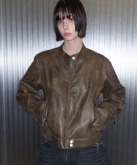 9164 빈티지 코팅 레더 점퍼