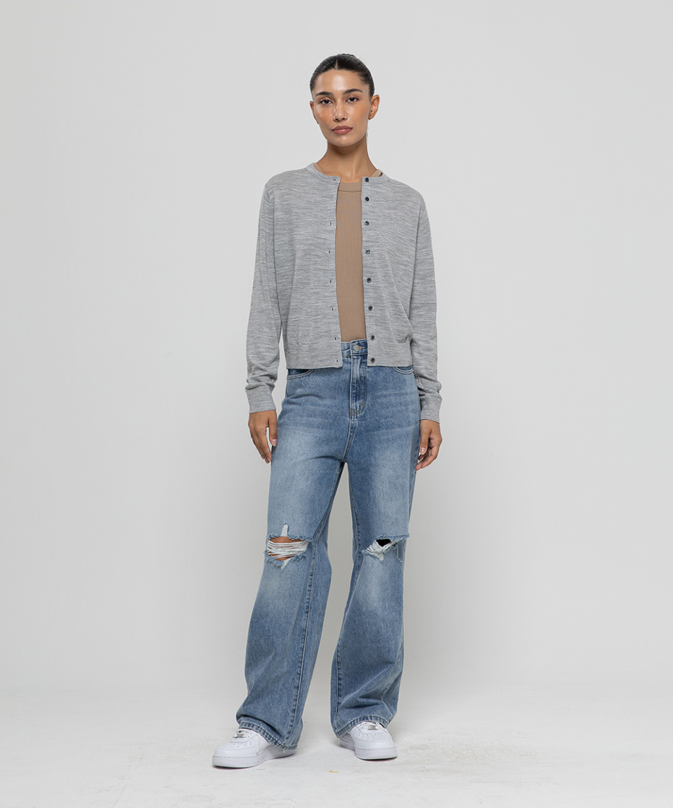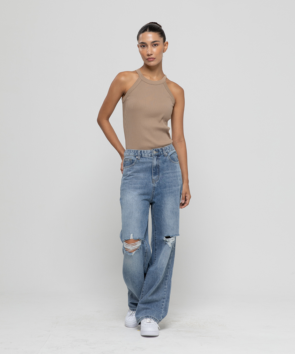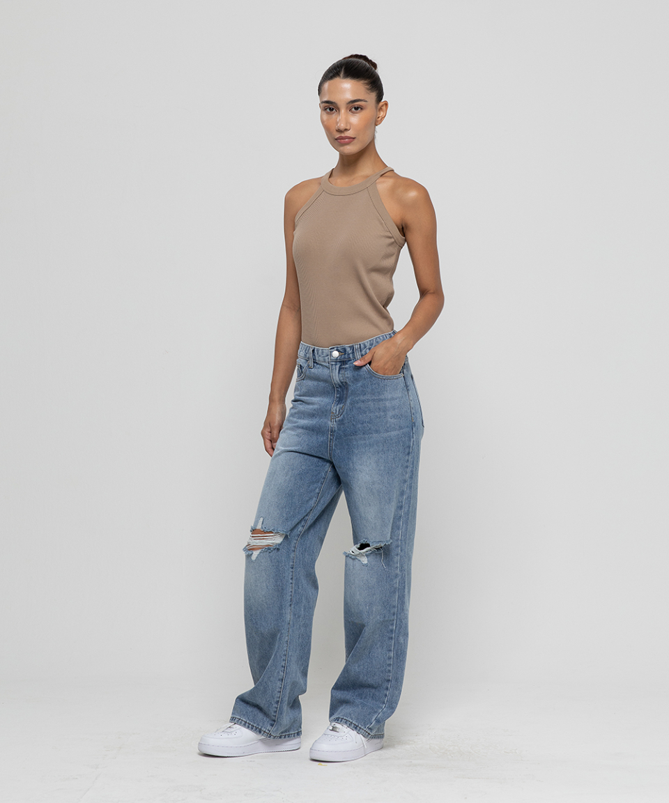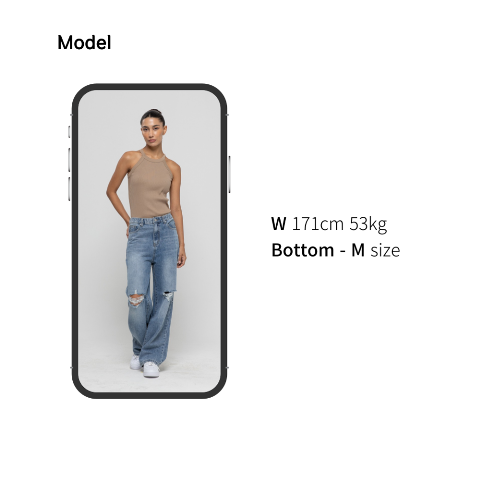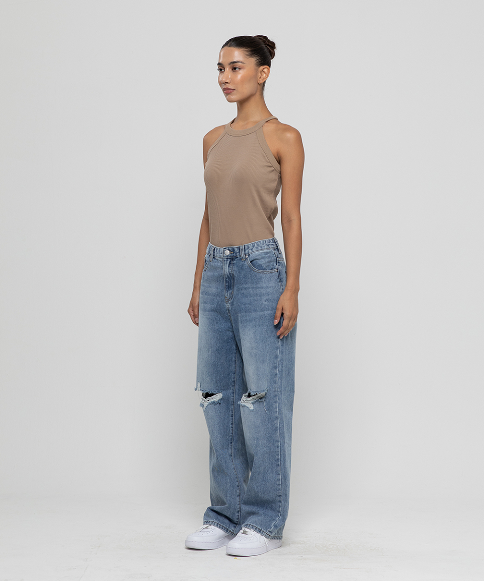 우먼즈 디스트로이드 세미 와이드 워싱 데님팬츠[라이트블루]