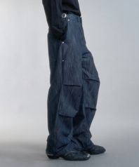파라슈트 비조 curved 와이드 데님팬츠 - 러프인디고